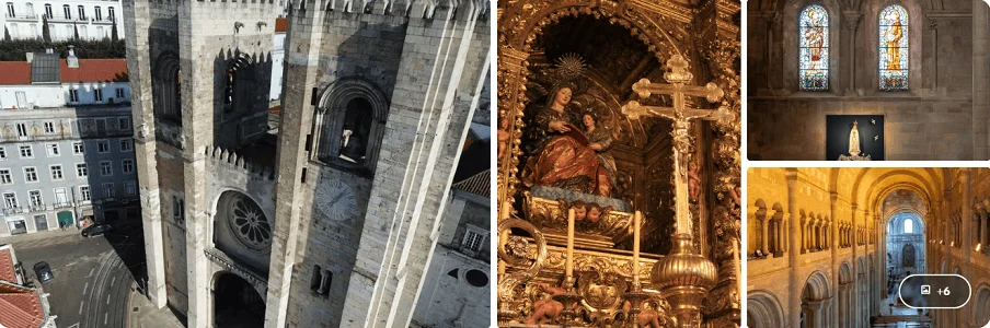 En entrant, vous découvrirez une atmosphère solennelle avec ses arches massives et ses chapelles latérales. C’est un lieu où l’on sent le poids des siècles, puisque la construction a débuté au XIIe siècle après la reconquête de Lisbonne.