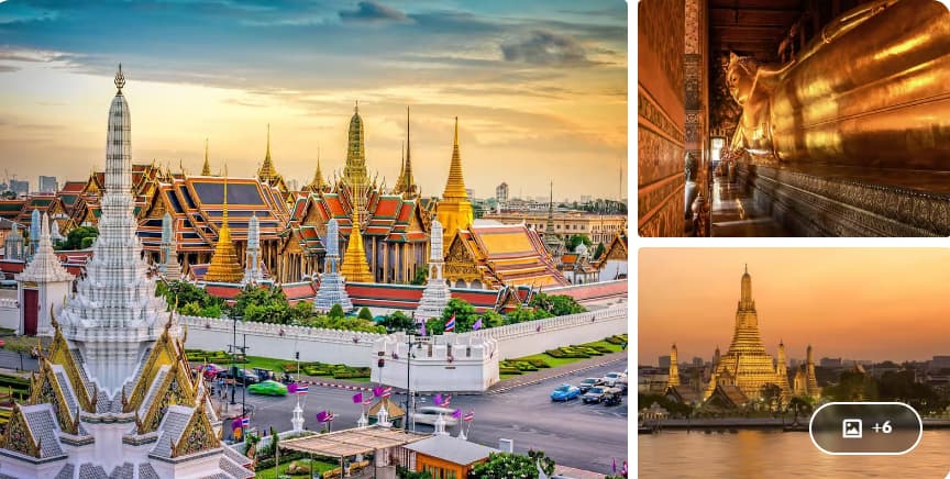 - Sites principaux – Grand Palais, Wat Phra Kaew, Wat Pho